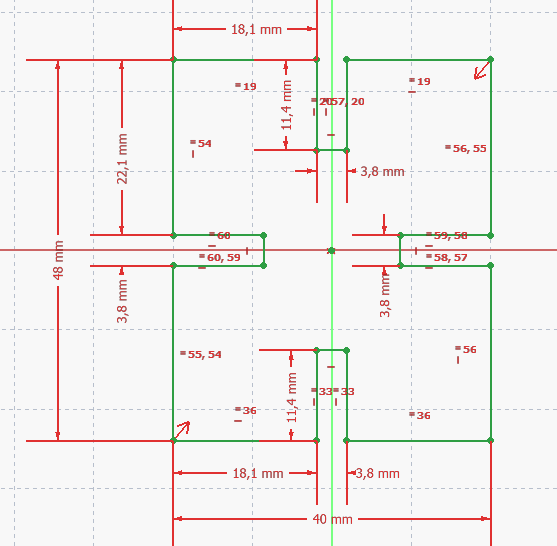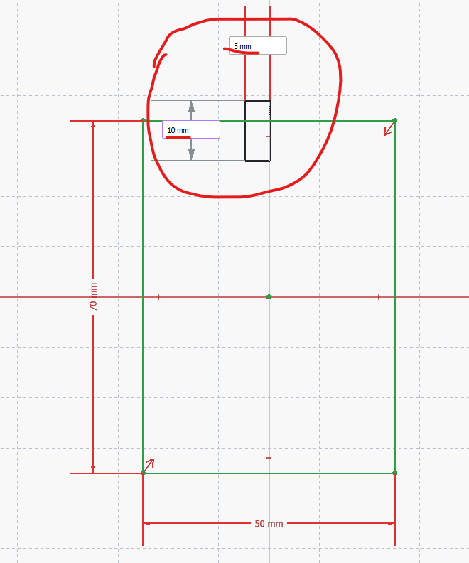 - Use the rectangle tool again to draw a second rectangle with the specified dimensions.