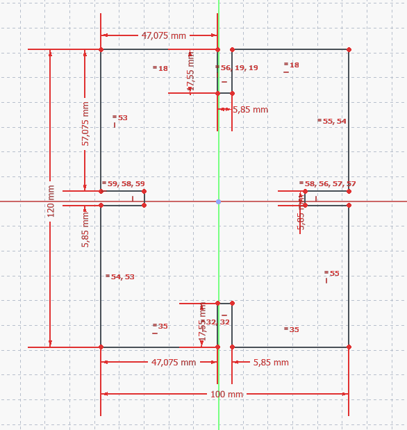- Once all constraints are defined, we obtain the final parametric sketch shown below.