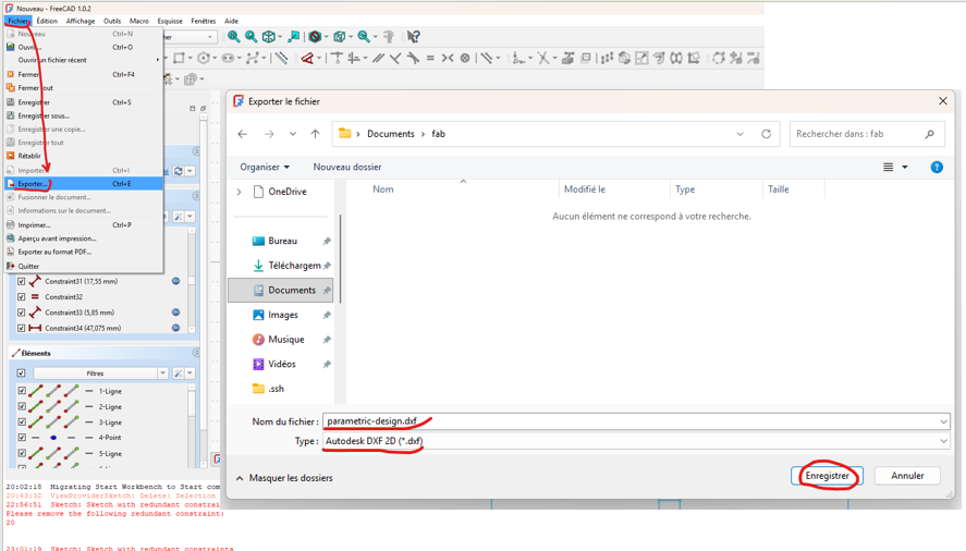 - Finally, select the sketch, click File > Export, choose the .DXF format, and save the file.