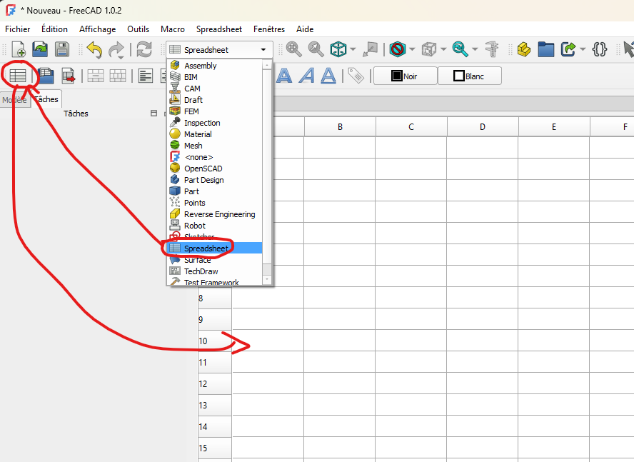 - From the workbench drop-down menu, select “Spreadsheet”, then click “Create a new spreadsheet”.