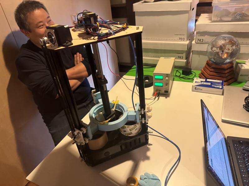 At this point, it was 5 PM on Sunday and closing time at the Kamakura lab was approaching, so we decided that Koshi would complete the unfinished extrusion mechanism, and Daisuke would design and program the motors, sensors, and other electronic components by the weekend, and then we disbanded.