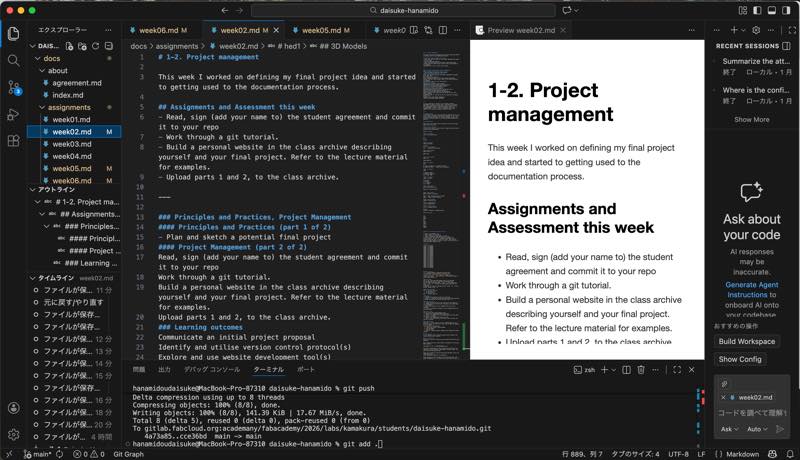 It was a week where I learned a lot of things. Normally, development is done by a small team of just one or two people. This class required skills that aren’t often needed, such as file management, website creation techniques, and how to document them, so I’m in a hurry to document them as well. I wonder if I’ll be able to finish in time for class…?