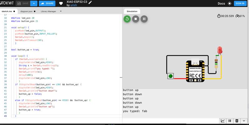 There are several ways to do this, but this time I tested two web-based methods. First, I tried Wokwi, which I used in Week 4.