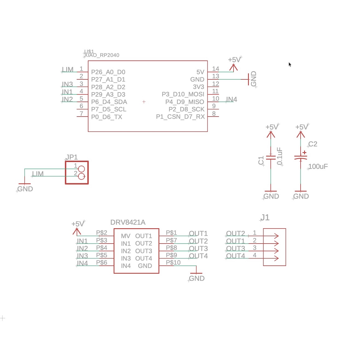 * Sends control signals to the 4-wire input of DRV8421A.