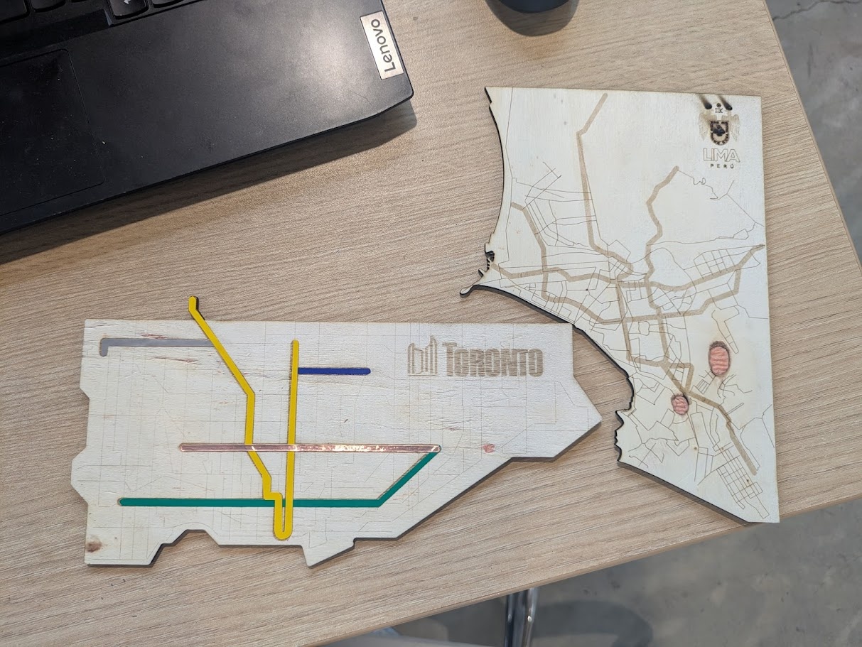 I have a Cricut Maker 3 in my classroom back in Toronto, so I'm not new to vinyl cutting, so I opted to mix mediums and create something that utilized the laser cutter, engraver AND vinyl cutting for maximum Fab Academy points. I had an idea to create cut outs of the transit maps for both Toronto (where I'm from) and Lima (where I'm living right now).