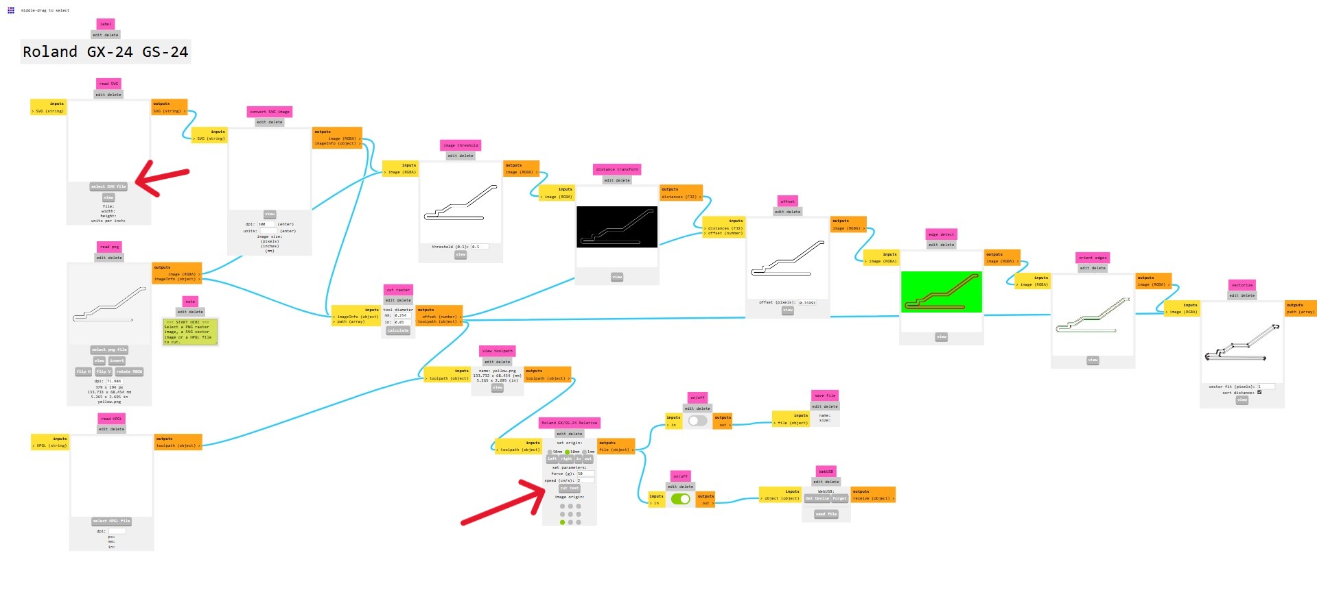 I traced out the map in Illustrator and separated the passes into different layers, separating the vinyl cut layers further into individual colours, then it was off to the machines! The H2D handled the engraving and cutting, while our new (old) friend, the Roland CAMM-1 handled the vinyl cutting. Honestly, I enjoyed using this machine much more than the Cricut, which crams their crappy software down your throat, trying to get you to purchase a subscription to their vector library. With the Roland, Jorge showed me a web based tool called Mods Project that could communicate with the machine over serial-to-USB (seriously!) and I could send the G-Code that way. To use this tool with the Roland, right click > programs > open program > Roland GX-GS vinyl cutters > cut, then modify the output by adding a usbserial module (right click > modules > add module > webserial, then hook up the file outputs from the Roland program to the inputs of this block).