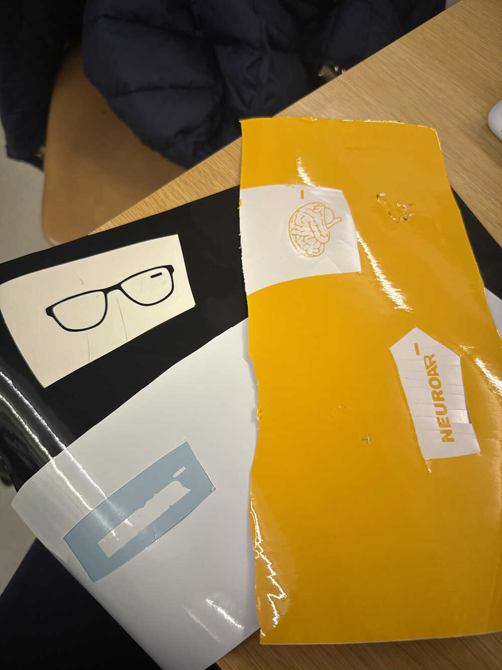 Here are all the elements after printing them in their colors, some errors definitely happened through printing like having too small of a vinyl piece, and some very tiny details like the waves on the glasses didn’t make it.