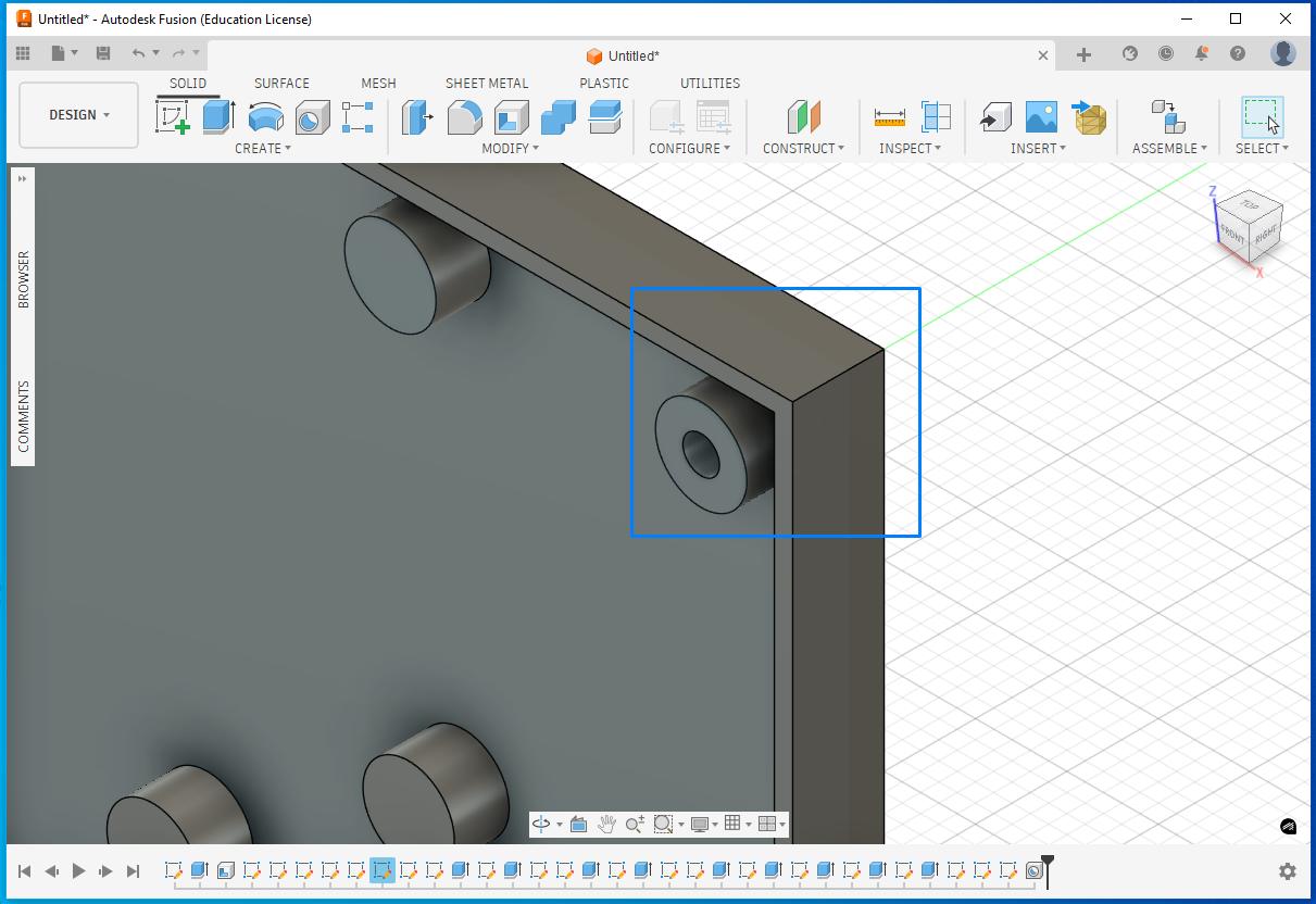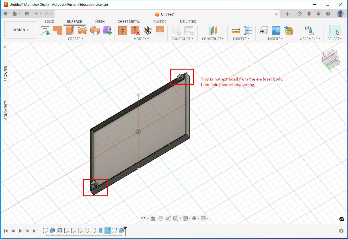 At one point, I made a mistake by selecting a plane to draw a circle instead of selecting the actual surface of the part where the feature needed to be created.