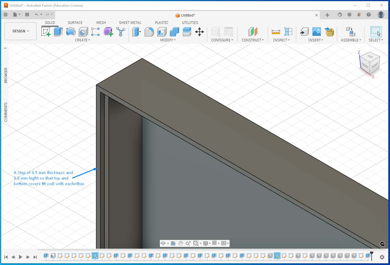 I created a step on the wall so that top and bottom encloser can fit well on each other.