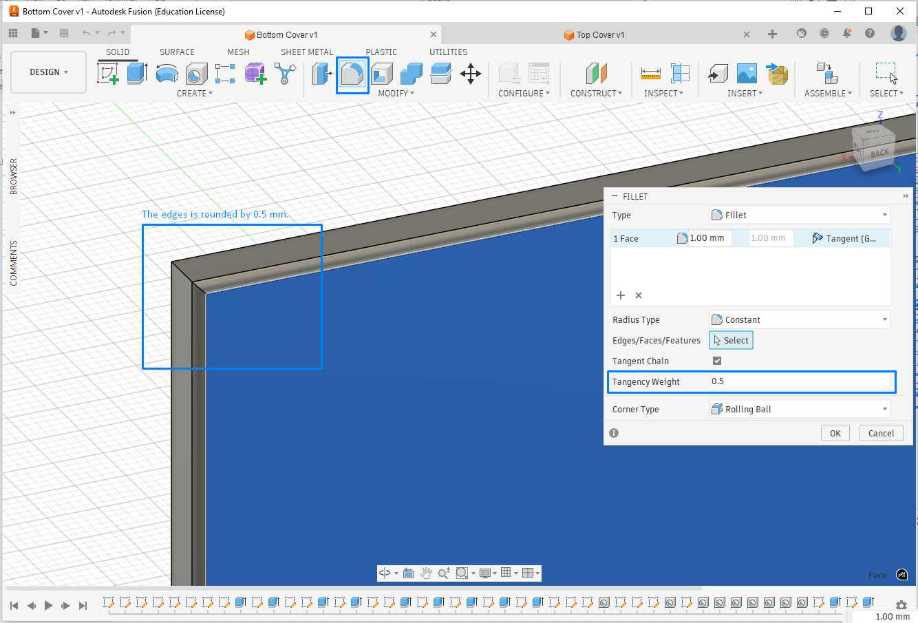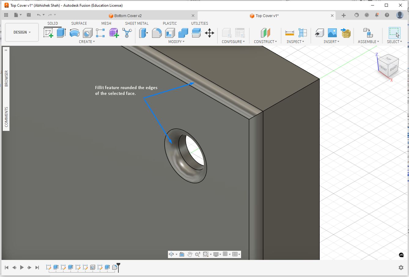 The fillit feature rounds the edges for selected face.