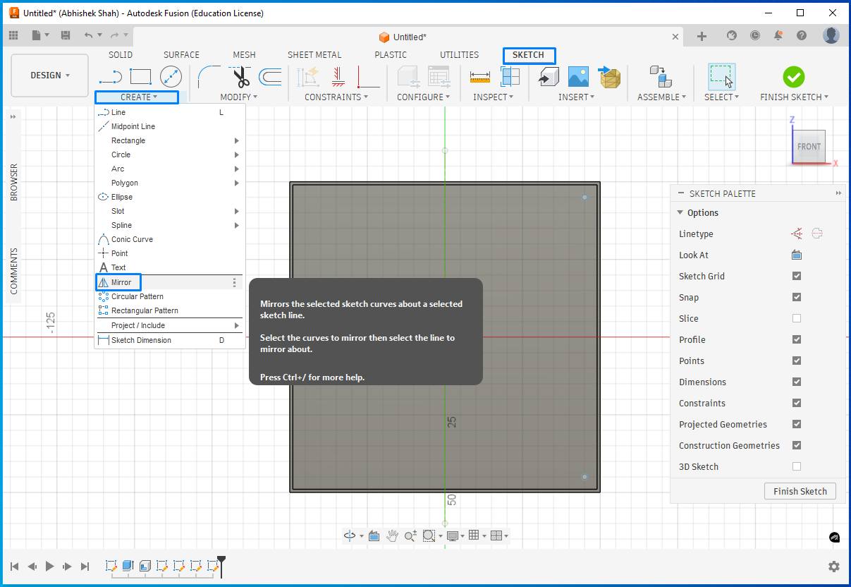 - Go to Create Sketch