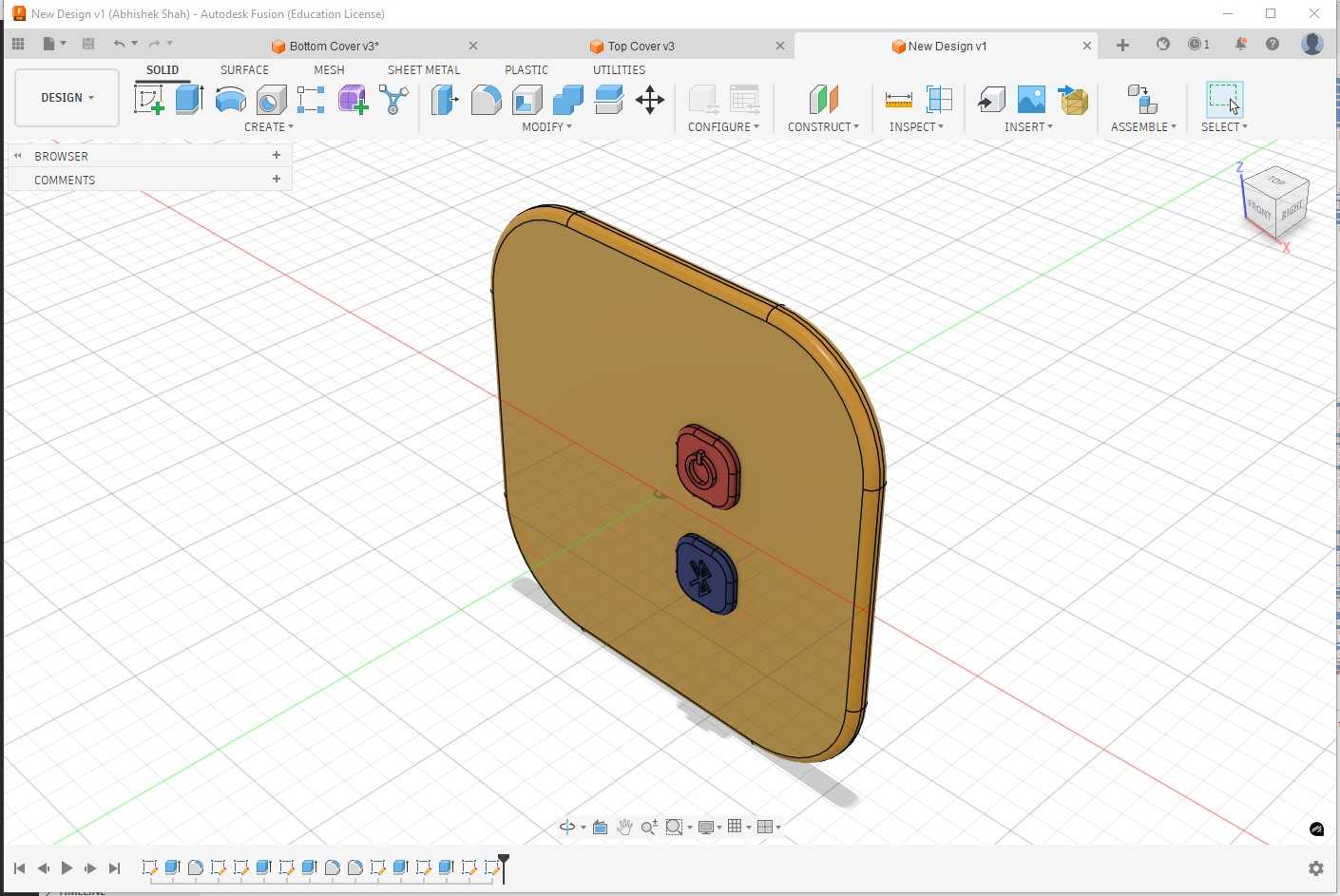 I selected part design to create an enclosure that houses the microcontroller PCB, Li-ion battery, battery charging circuit, and external connectors.