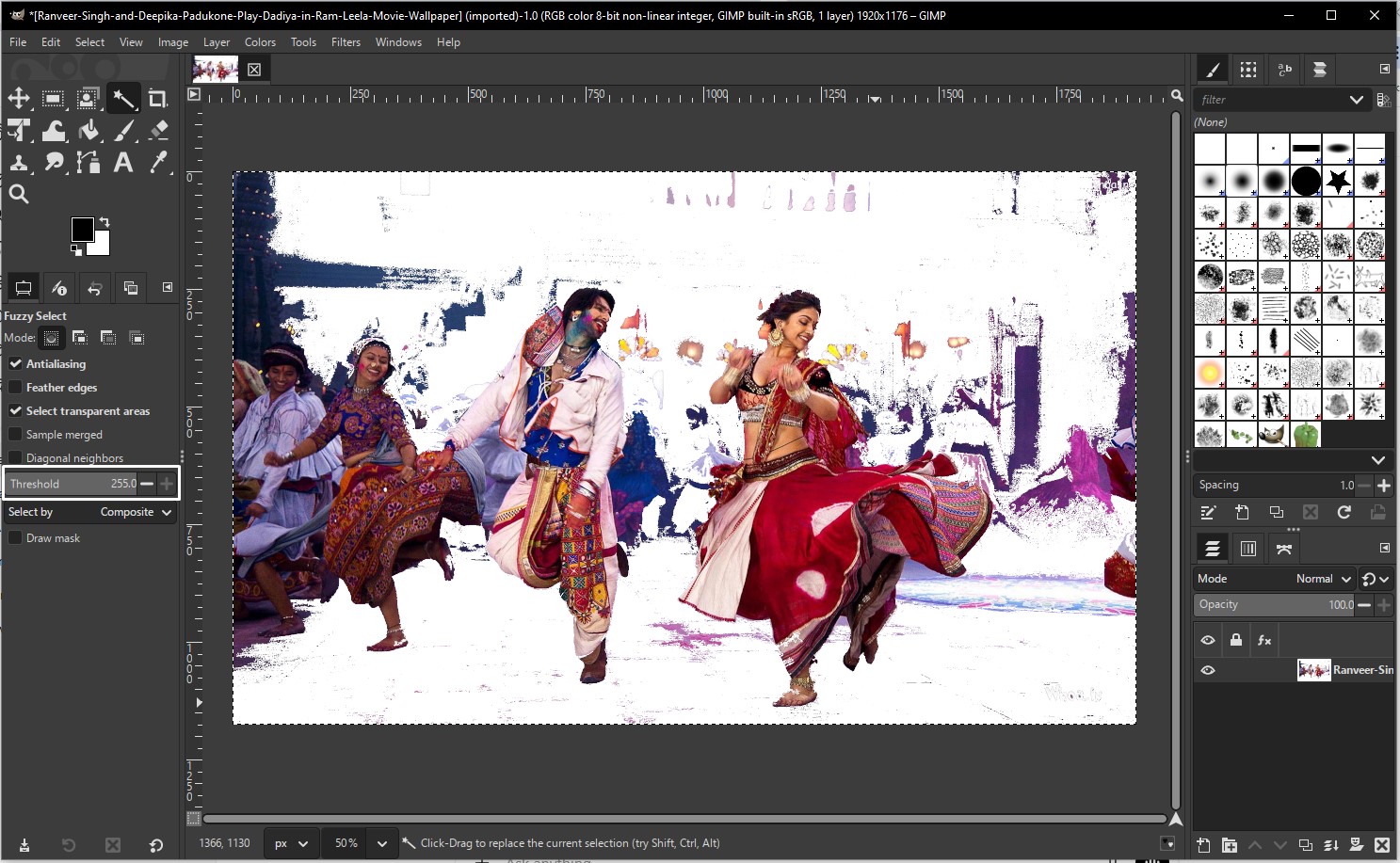 So I tried using Fuzzy Select tool, select Fuzzy Select Tool under Tool Tab (Shortcut: U) Click on background areas which all you want to remove, adjusted the threshold and pressed Delete.