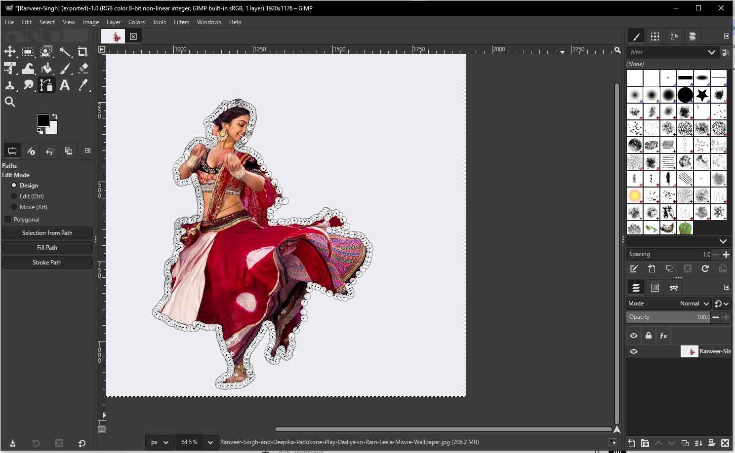 Now select Foreground Select Tool, Tool icon looks like a person with dotted outline, Shortcut: Shift + G, or we can find it under tools -> select tool -> Foreground Select Tool. Roughly outline the subject - draw a loose outline around the object you want to keep and then press Enter. this did not worked because it was asking to paint inside the selected part and if I select brush the earlier step was undone.