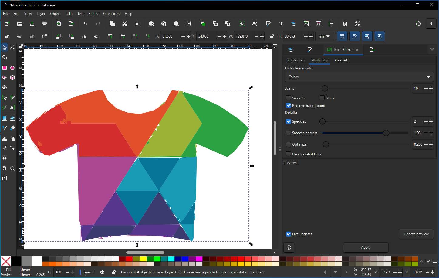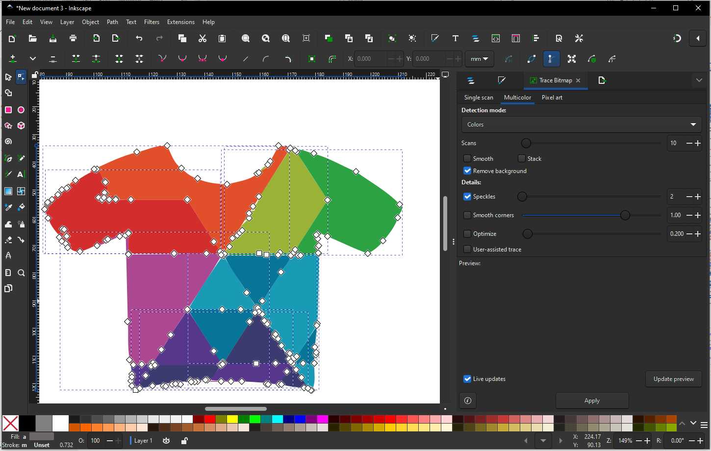 I find a inspiration image from FREEPIK, I tried to use Trace Bitmap function to convert raster image into vector path. First go to File → Import, Select PNG/JPG image then we need to convert into vector, then choose Embed, then go to Path → Trace Bitmap, a dialog box will get open in right side, I want my logo to be colorful so I selected Multiple Scans → Colors, then set the number of scans, Click Apply. Inkscape creates a vector copy on top of the original image, move the traced object slightly, delete the original raster image underneath, go to File → Save As, choose SVG (best for Fab) Or export as DXF for laser cutting.
