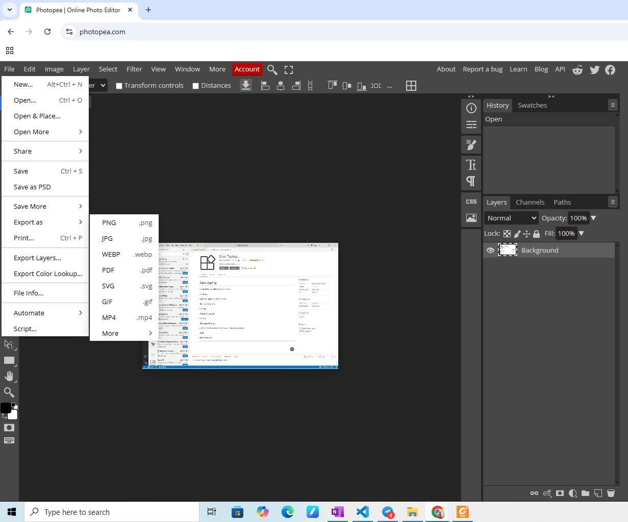 Photopea is an online image editing tool used to resize and optimize images without compromising quality.
