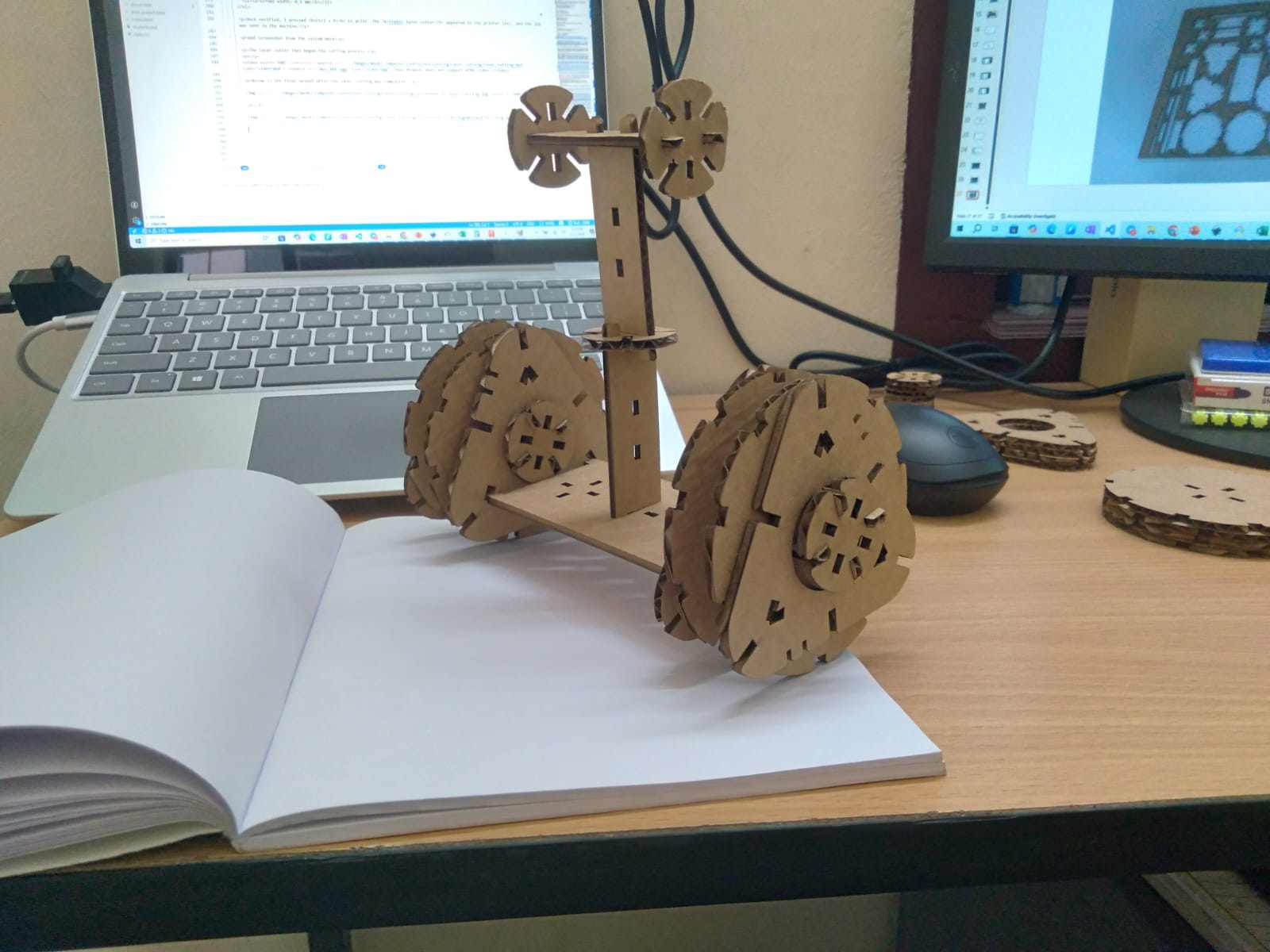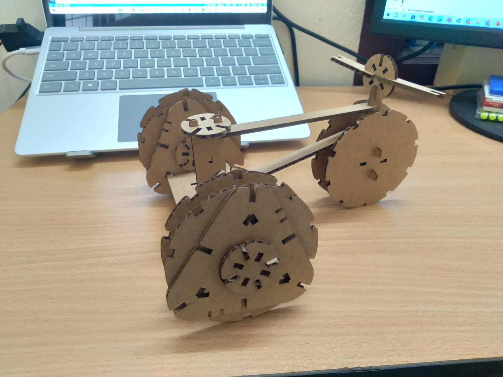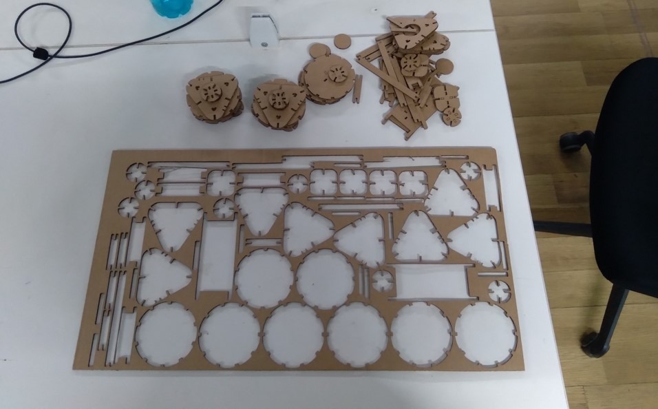 After cutting, I began assembling the construction kit elements. Since the chassis was designed in a modular form, I first assembled the wheels and then explored multiple ways of connecting them using the other chassis components.