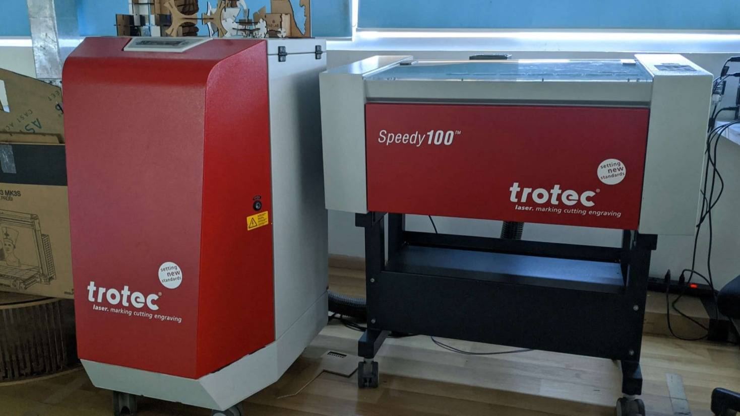 In our lab, we use a Trotec Speed 100 laser cutter.