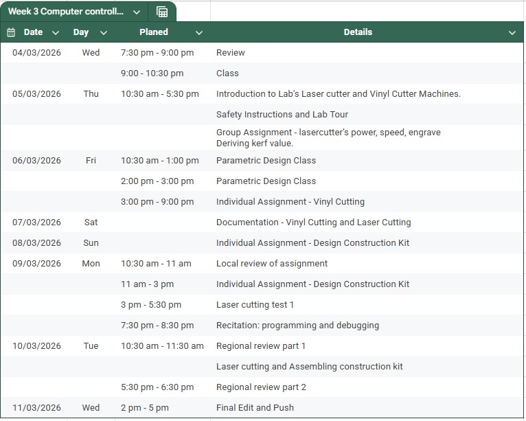 This week is focused on computer controlled cutting and below are the assignment points.