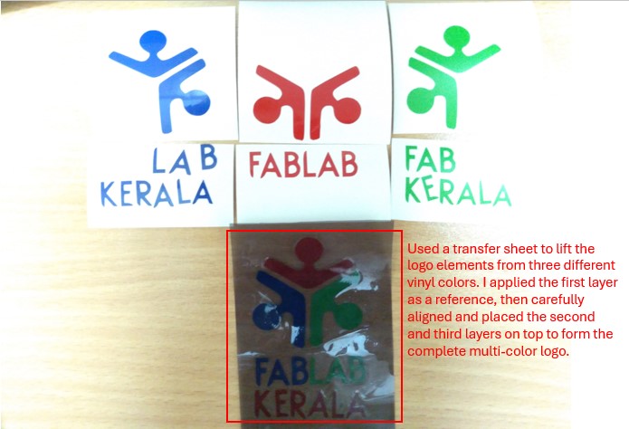 I experimented with a multi-color logo to practice vinyl cutting workflows. This helped me learn how to align multiple vinyl layers, transfer the designs using a transfer sheet, and apply them neatly onto my laptop surface.