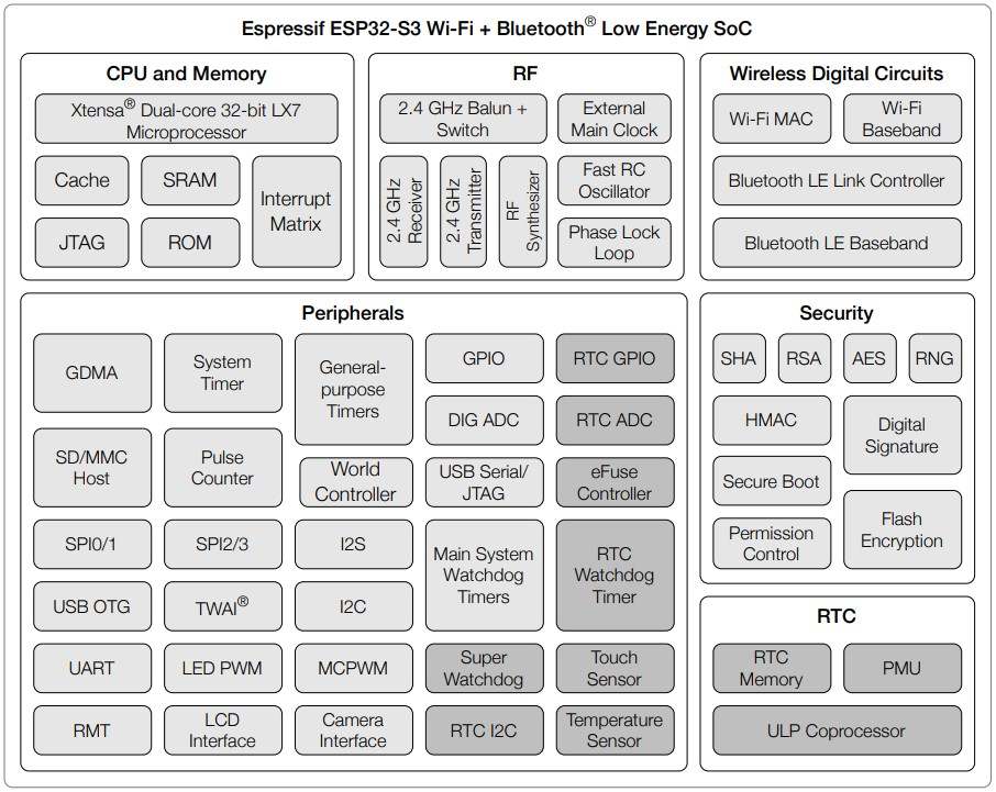 - Processor - Dual-core Xtensa LX7 CPU (32-bit)