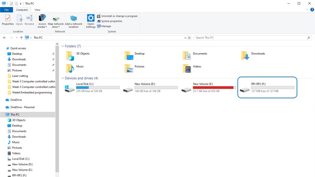To upload and run the code, I first clicked the โRun current scriptโ button in Thonny. During the first execution, Thonny prompted me to choose where to save the script file. Both This Computer and Raspberry Pi Pico are valid options; however, if the program needs to run independently without connecting the laptop, the file must be saved directly on the board as main.py. After saving the file, I clicked Run current script again to execute the program.