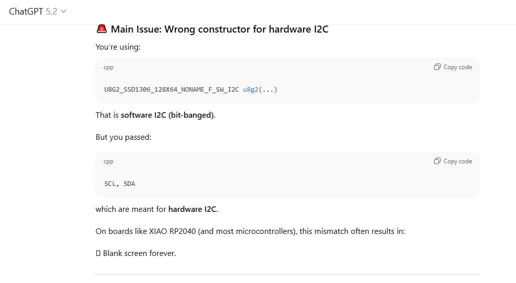 Next, I copied the NeoPixel example code from the Seeed Studio wiki page and used AI assistance to obtain a line-by-line explanation to better understand how the program works.