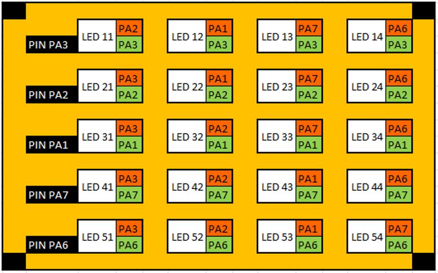 LED led = LED_TABLE[r][c]; // look up anode and cathode pins