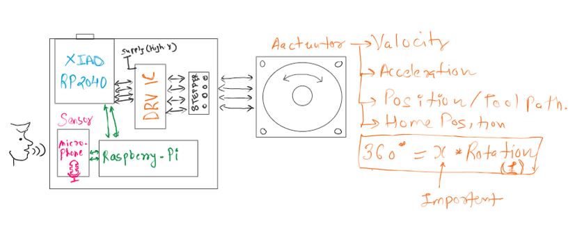 AI prompt: "can you give me an image by referring below two images, it was week 12 - Machine design week and we made a voice controlled smart rotary table. I am attaching the team photo (me, Ashthami, Ali, Ardra and Micheal) please include all in the image that you make. make the image fun animated and landscape image. we used 3D printer, CNC milling machine, leaser cutter, PCB milling machine. I am also attaching the final rotary table images."