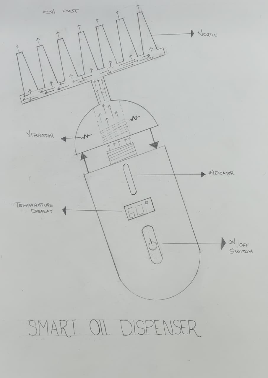The Smart Hair Oil Dispenser is an innovative personal care device designed to improve hair nourishment and scalp health through controlled oil heating, precise dispensing, and therapeutic massage. The system incorporates a 20 ml aluminum chamber that enables efficient heating and cooling of hair oil, with a maximum operating temperature of 60 °C. Controlled heating enhances oil absorption, supports faster hair growth, and helps maintain scalp protection without causing thermal damage.