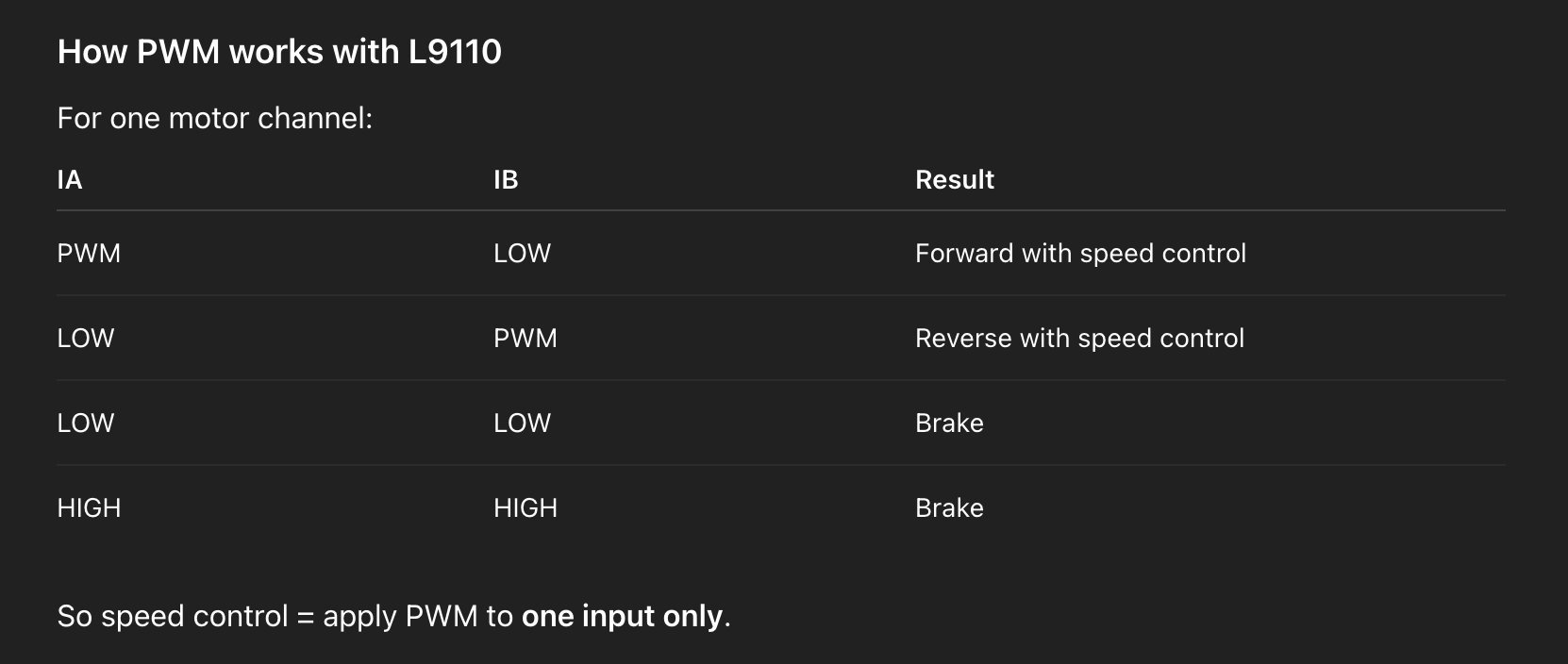 imgNow, after going through its datasheet we found out that it does not have any PWM pins, but can imitate it using it’s IA and IB pins as follows: