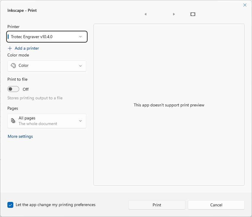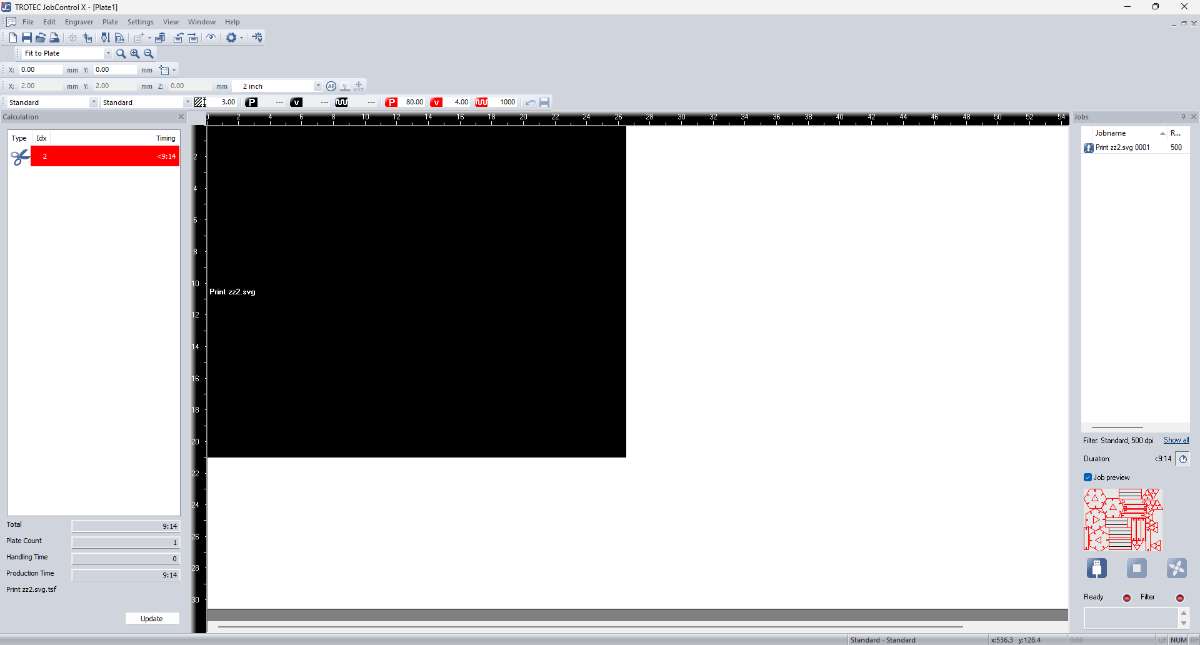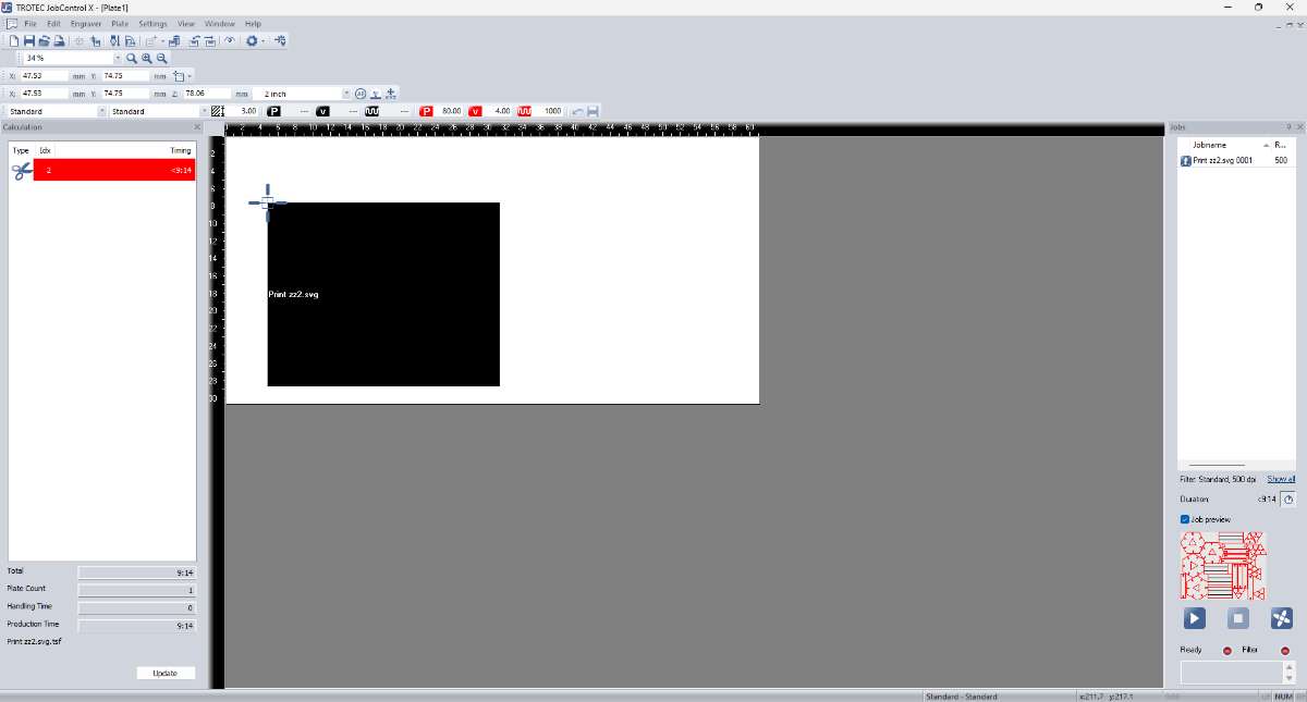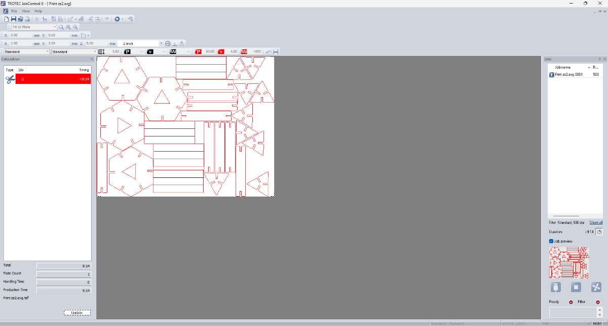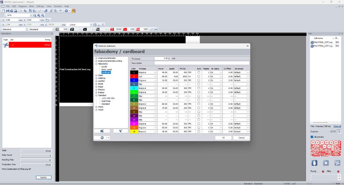 After which you'll be taken to Trotec Jobcontrol X software, where you can align and redefine/set the power/speed according to the colors of your choice, which ultimately defines the type of engraving/cut you want to do. This is what you'll be getting: