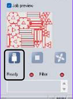 We insert the svg file, adjust the speed (force parameter does not work, we have to set it in the vinyl cutter), press 'calculate' and press 'send the saved file' to start the operation. We press 'calculate' and 'send the saved file' every time we adjust some parameter before cutting.