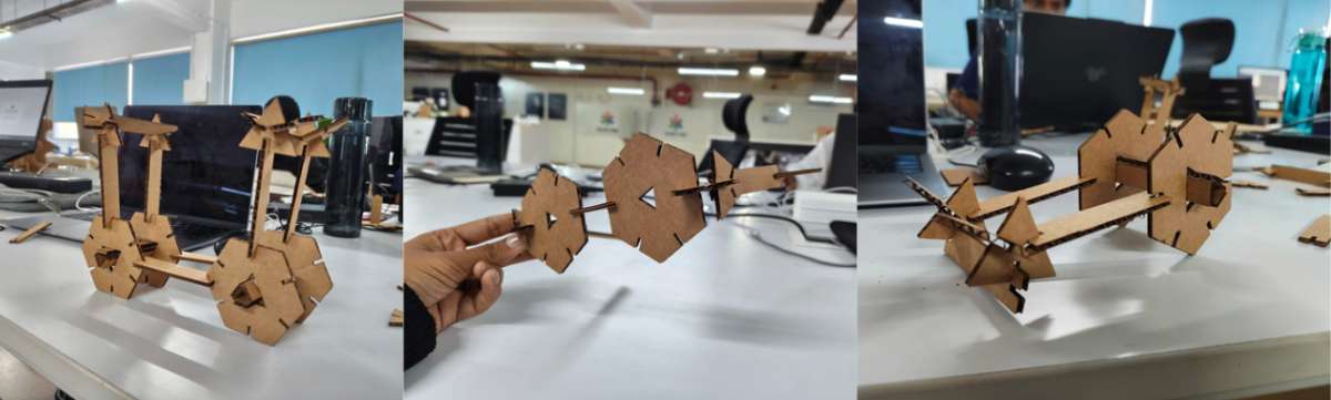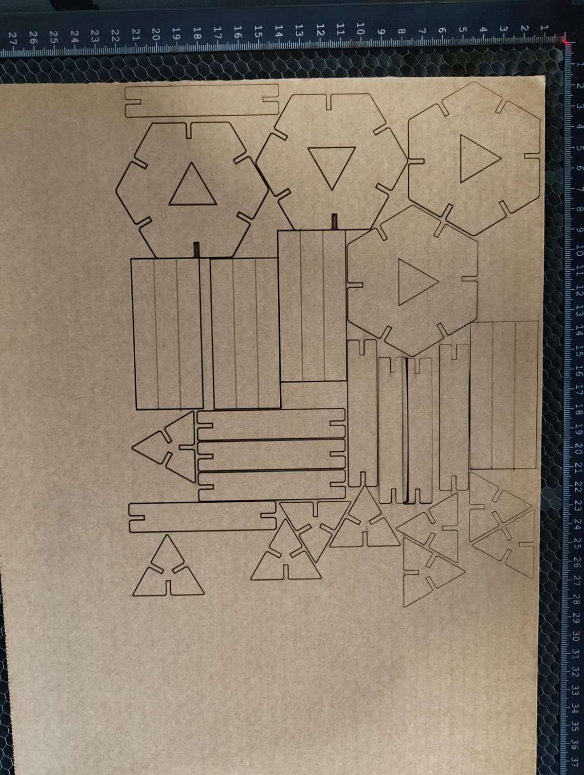 Different cardboard sheets can have differences in thickness and very small differences in kerf, so we always make a test cut and test the joints once before making multiple copies. It also helps us find flaws in our design without wasting material. We figured out parameters through the group assignment.