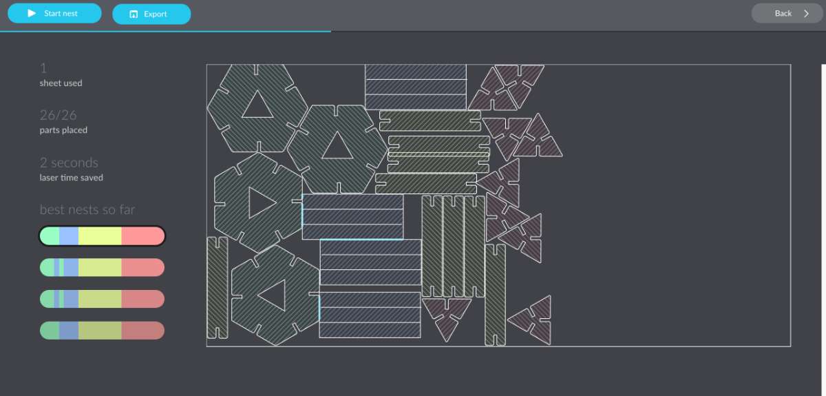 First open the svg file exported from Deepnest in INKSCAPE, make sure that the measurements are what you had in mind.