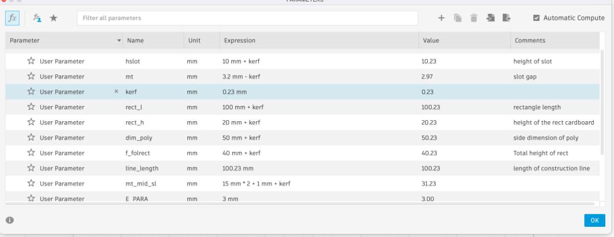 Material Thickness (MatThick): Thickness of the material we are using, ie. cardboard = 3 mm