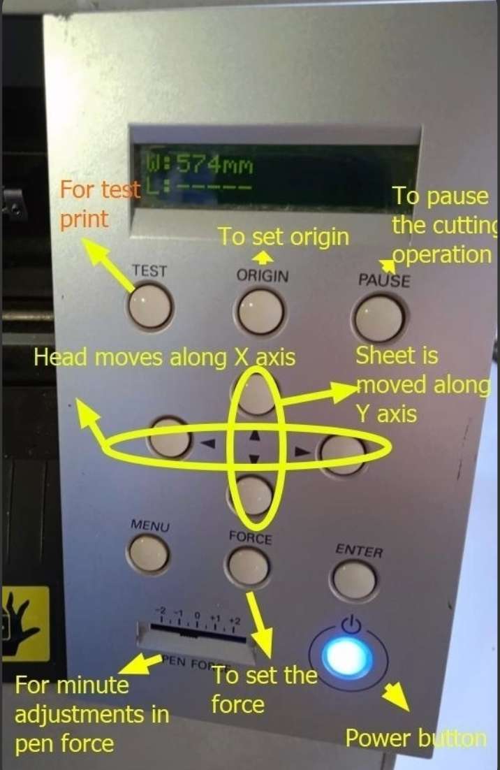 7.We also need to set the required force, speed and depth. To test this we use a test cut. A good cut is when the outer circle peels off when we pull but the inner square does not come out with the outer circle
