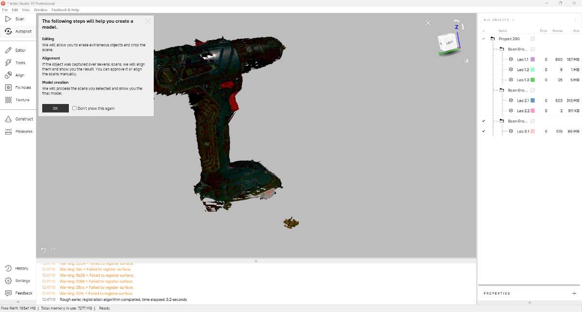 After the process, we get the 3d model of drill machine. The processed scan is then saved in OBJ & STL formats.
