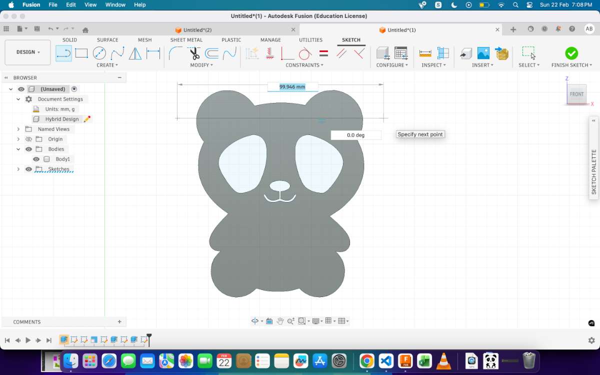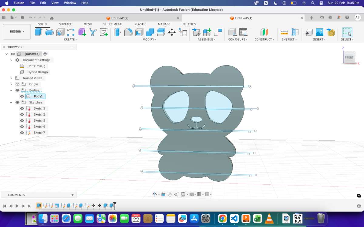 First, i began by importing an svg file of the Panda to Fusion 360.