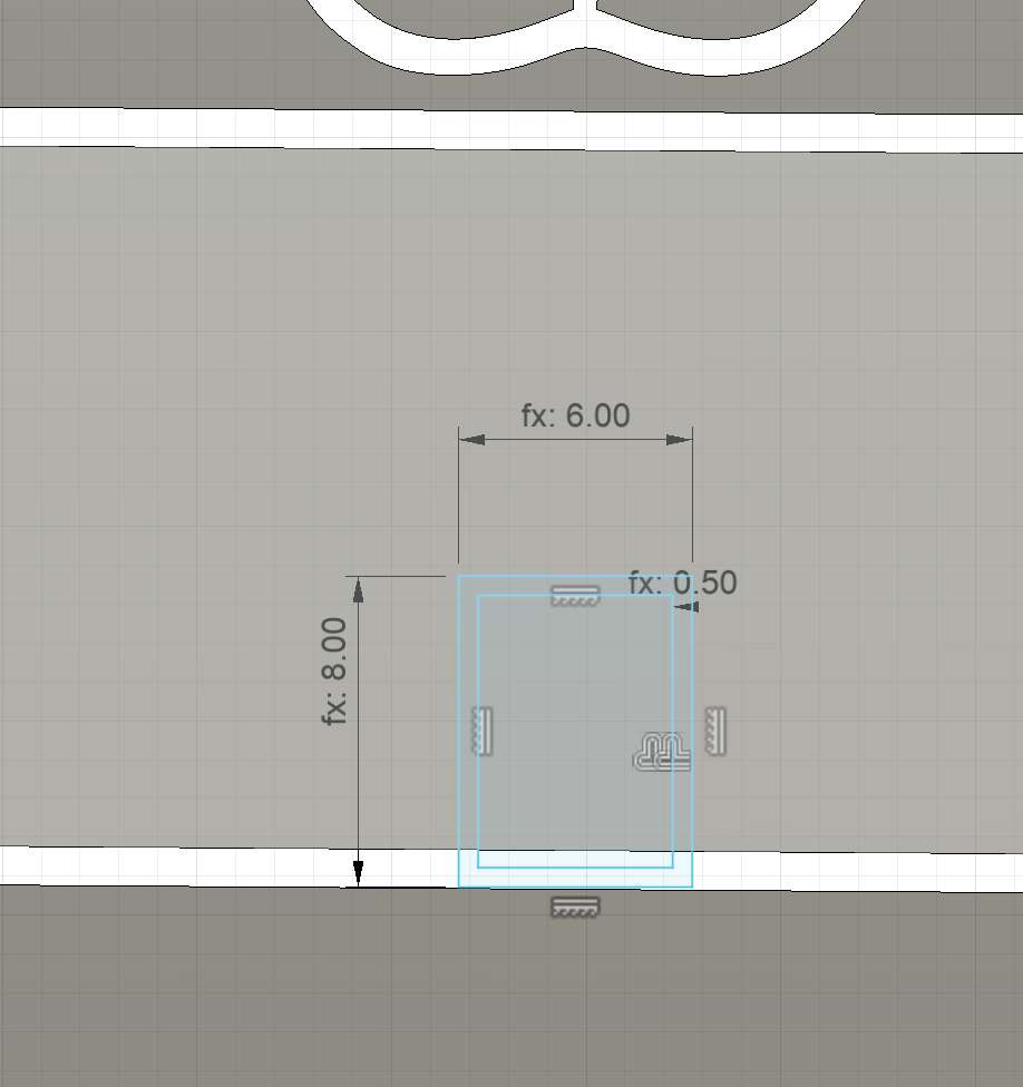Then to make the joint, i drew a rectangle sketch, b=6mm, h=8mm, with an offset of 0.5mm. and then cut the outer section , creating a space between the body and the rectangle, then connect the rectangle to the lower body.