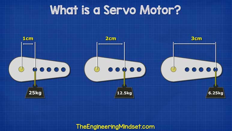 Servo motors are usually rated in kg/cm (kilogram per centimetre). This means the torque the motor can provide at a certain distance from the shaft. For example, a 25 kg·cm servo means it can support 25 kg at 1 cm from the shaft. If the distance increases to 2 cm, it can support 12.5 kg. At 3 cm, it can support around 6.25 kg.