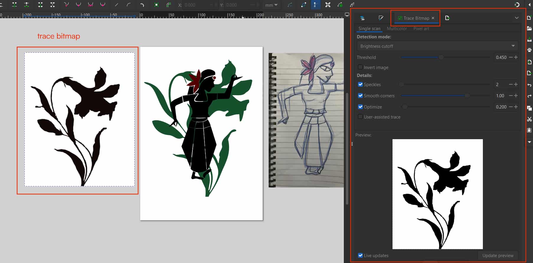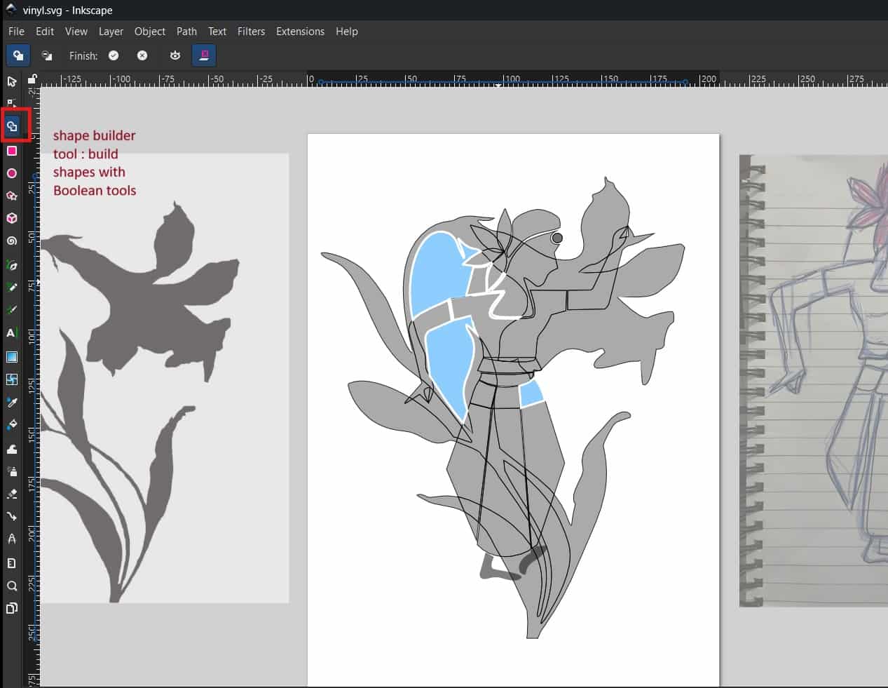 I wanted to add a flower behind the dancer, so I downloaded a flower image from Pinterest and imported it into Inkscape