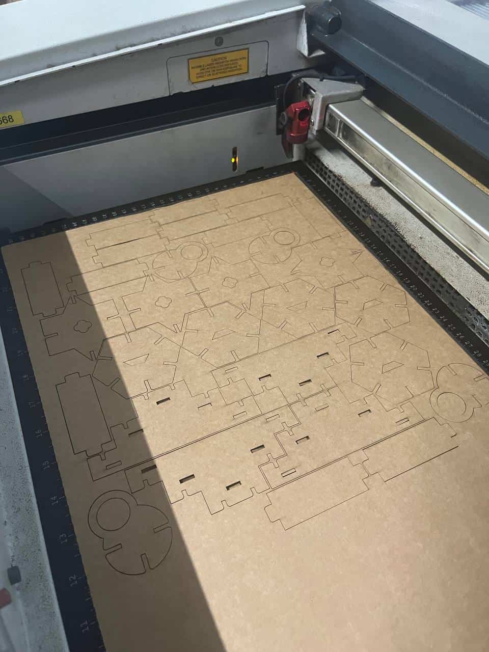 My material size was 570 mm x 300 mm, while the laser cutting working area is 610 mm x 305 mm.
