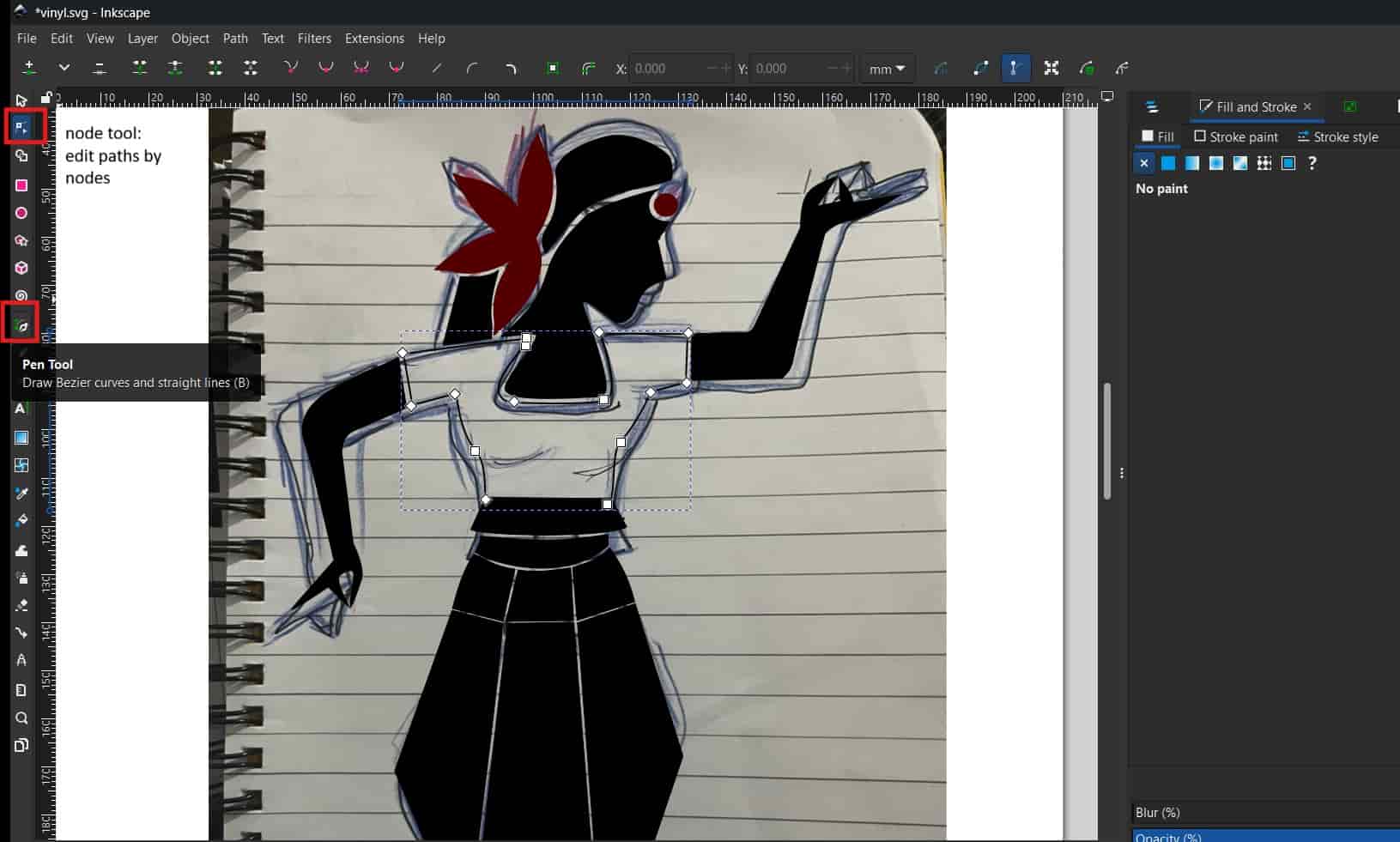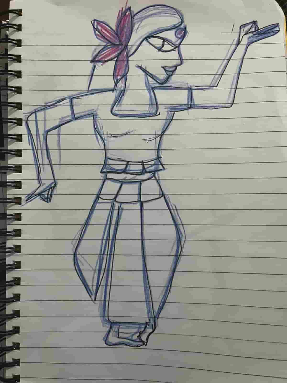 I started by designing the sticker in Inkscape. First, I sketched an Indian classical dancer on my notebook and then imported that sketch into Inkscape.