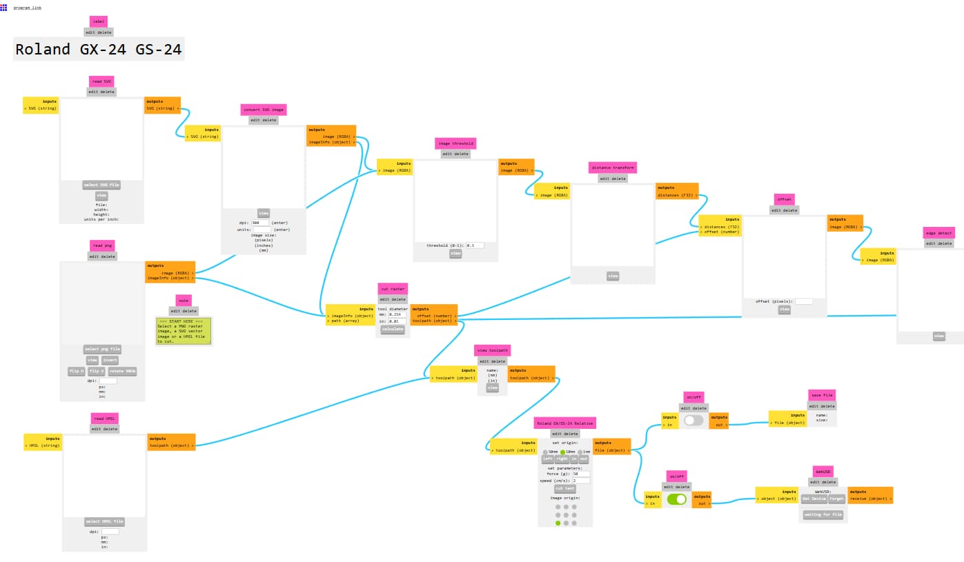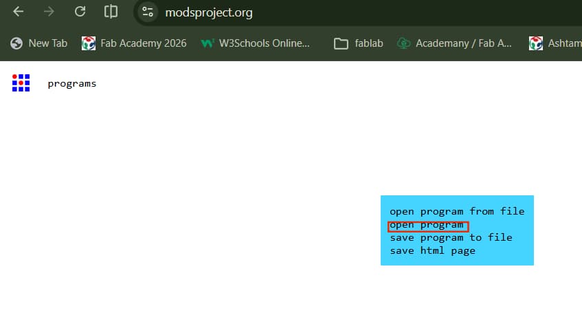 Here in fablab, we basically use ModsProject to send files to machine, which is browser based CAM open-source platform where you can connect fabrication machines and send file to machine.As its name mods, it is modular tool space where small functional blocks / modules connects together to create manufacturing workflow, like an ecosystem for digital fabrication machine. It is developed at MIT's center for bits and atoms by Prof. Neil Gershenfeld.