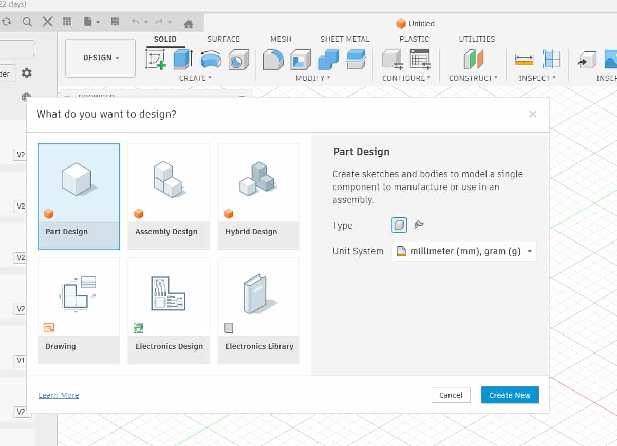 [ UPDATES: Fusion has now updated its interface into Parts, Assemble, and Hybrid.