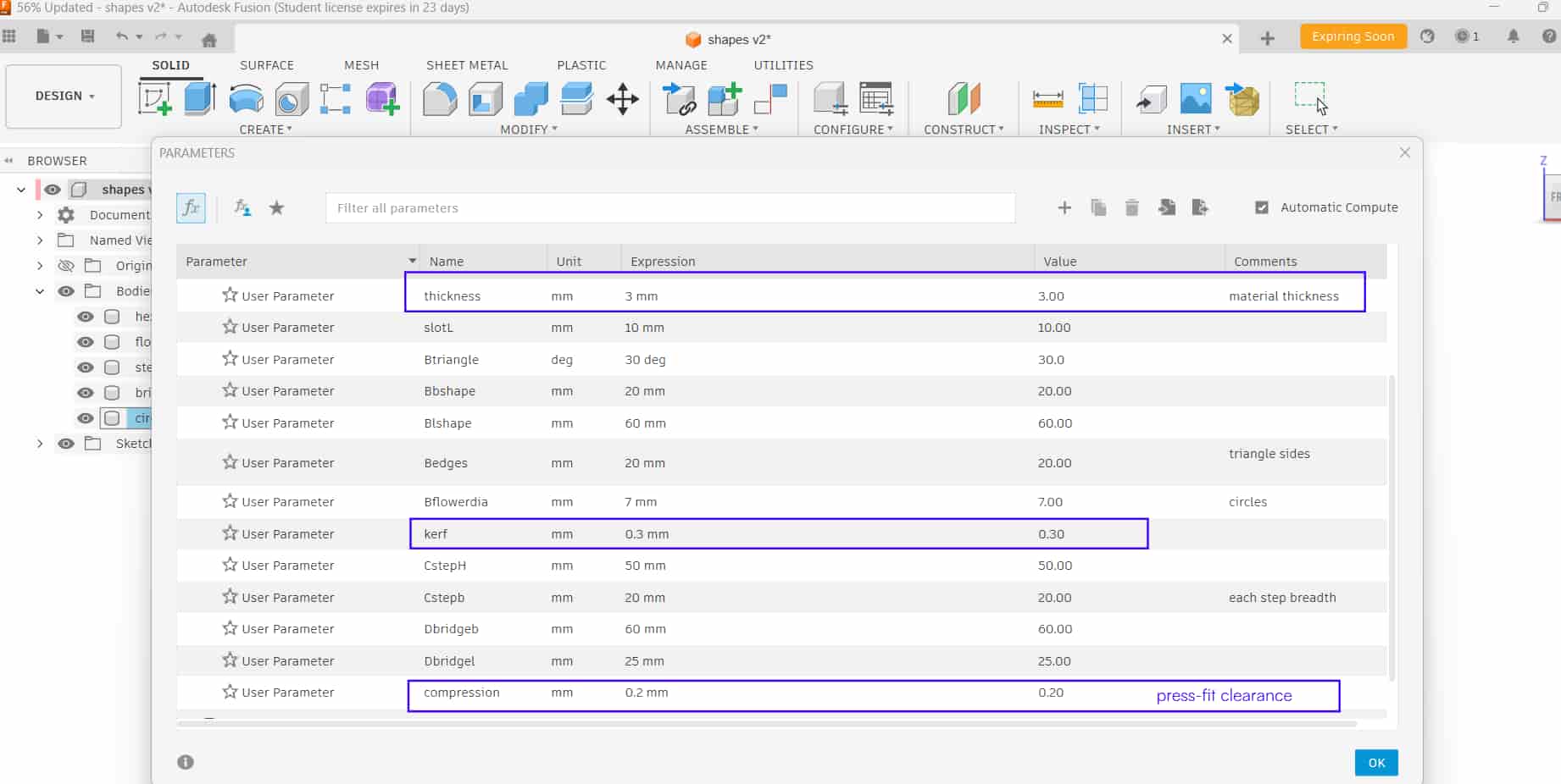 By adjusting the slot width based on the compression value, we can achieve joints that fit tightly.