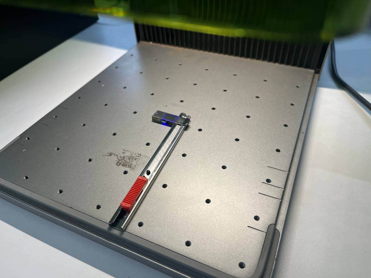 The small red laser pointer shows the exact cutting position.