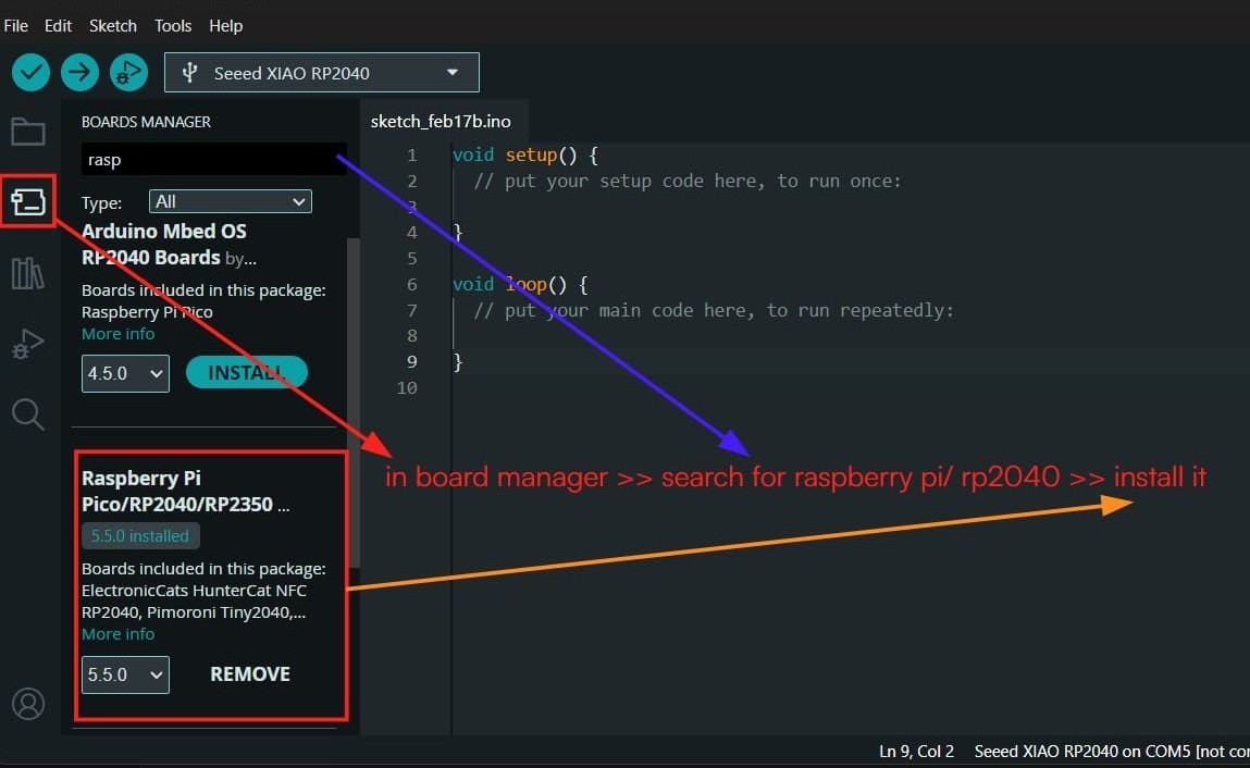 Installing Seeed Studio XIAO RP2040 board package