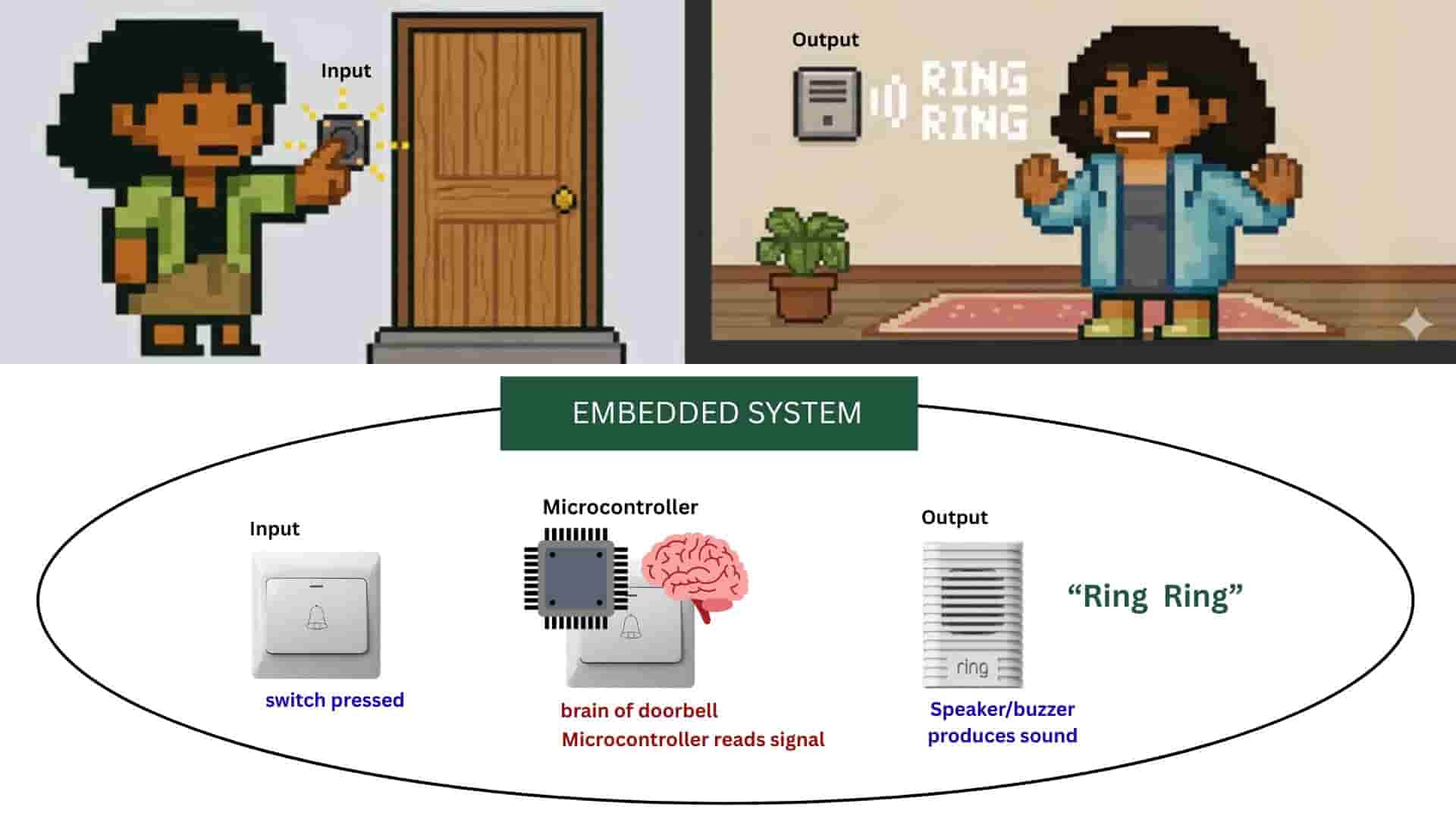 The whole doorbell device (button, circuit, chip, buzzer) that performs the specific task of producing a sound when pressed -Embedded system.